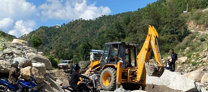 २० असोज, काभ्रेपलाञ्चोक । असोज १८ र १९ गतेको वर्षापछि आएको रोशी खोलाको बाढीले बगाएको बीपी राजमार्गको डाइभर्सन पुन: बनाउन सुरु भएको छ ।